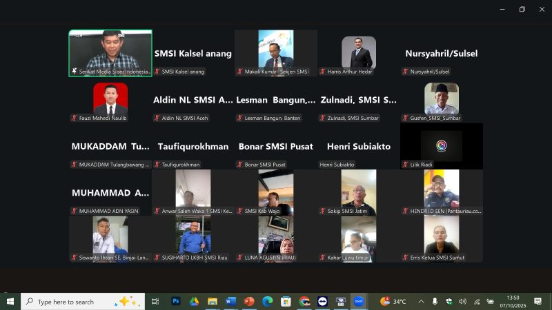 Dialog nasional yang mengambil tempat di Kantor SMSI Pusat, Jalan Vereran, Jakarta, dan diperluas dengan aplikasi zoom berlangsung Selasa, 7 Oktober 2025.